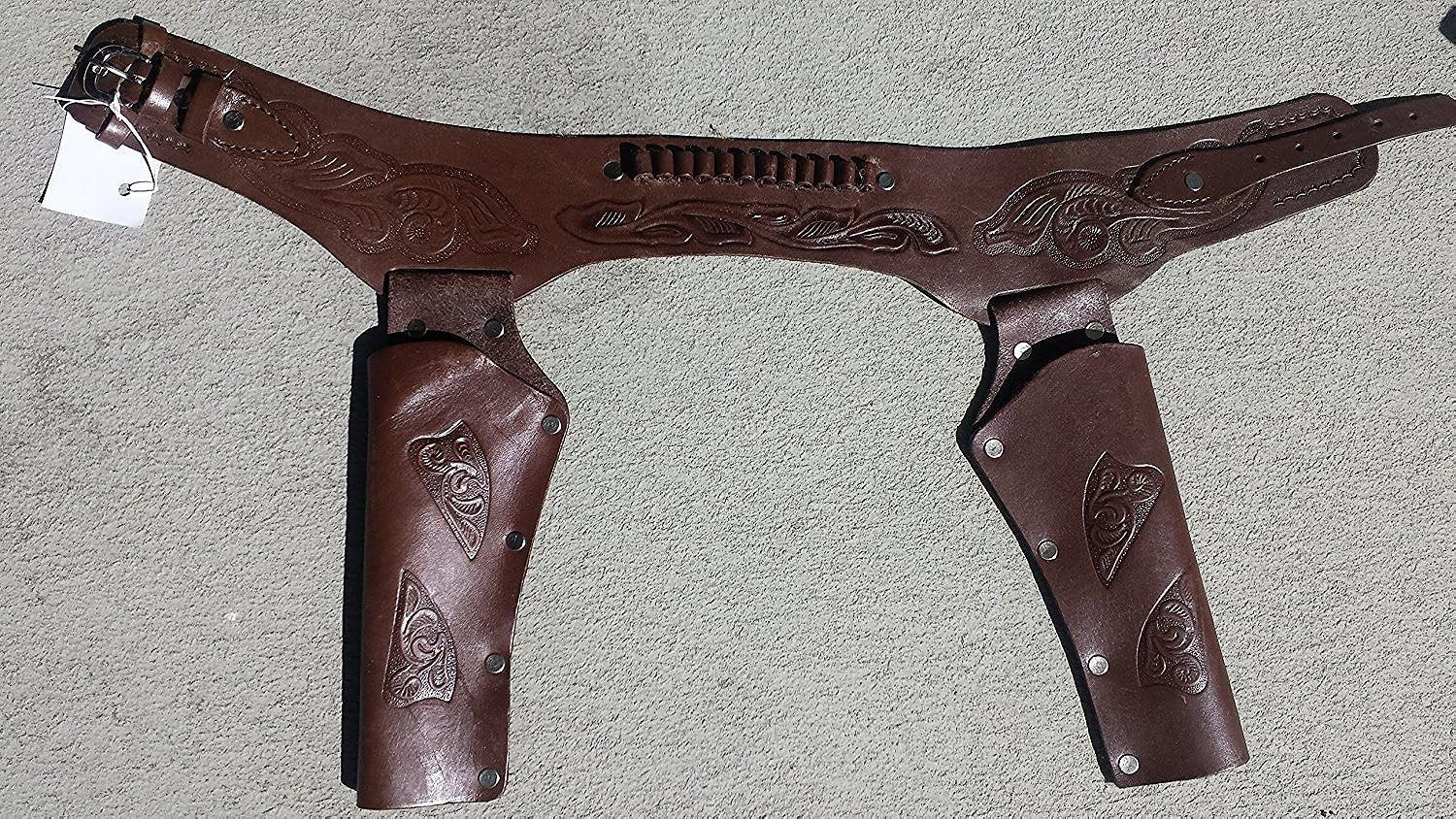 Western Express - Kids Tooled Double Holster Cartridge Belt - Brown Genuine Leather